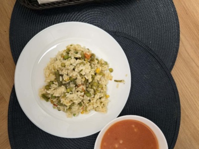 Risotto z warzywami (350g), zupa pomidorowa z lanymi kluseczkami(2, 4).